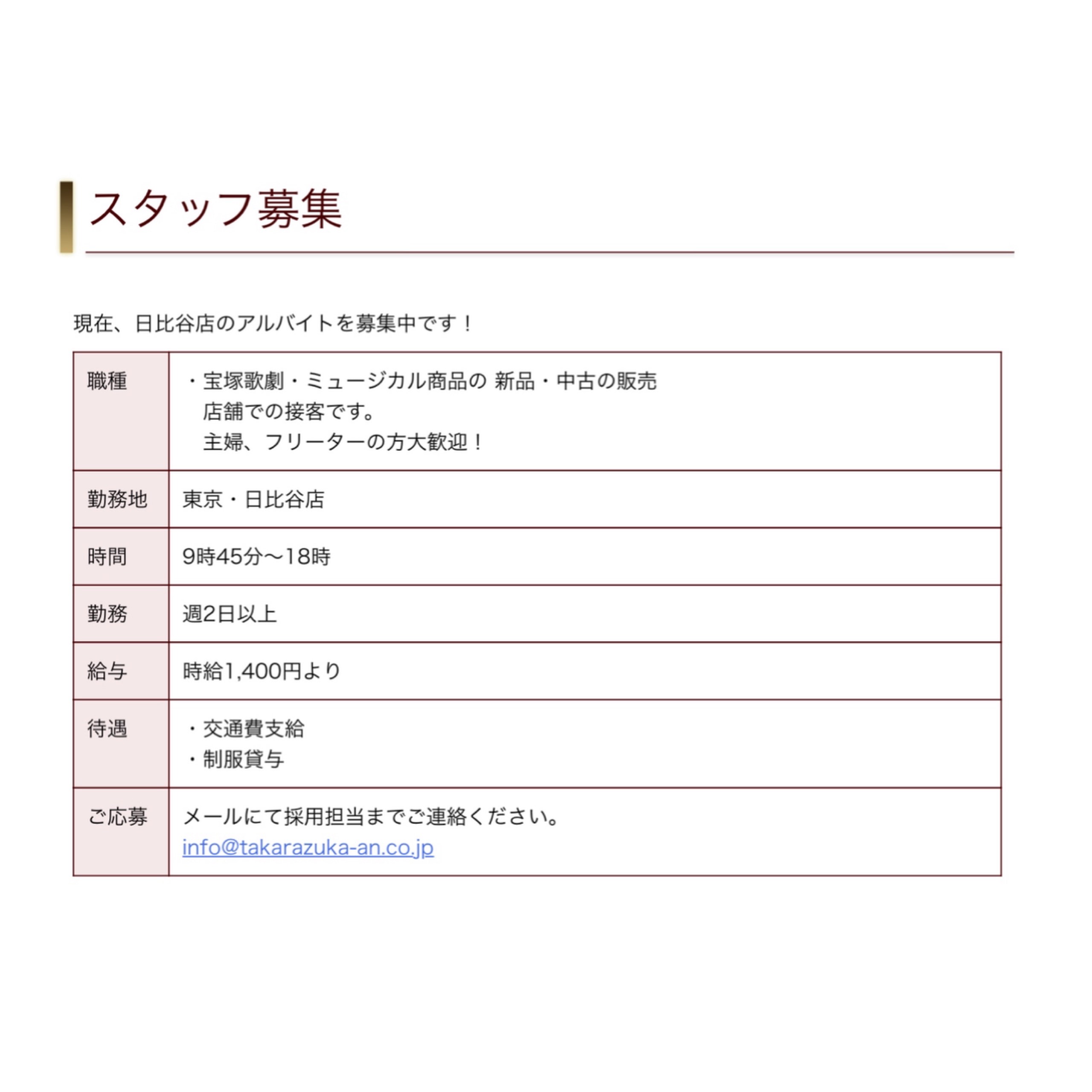 #宝塚アン #宝塚アン日比谷店 #宝塚 #宝塚歌劇団 #ミュージカル #宝塚アンスタッフ募集 #スタッフ募集 #アルバイト