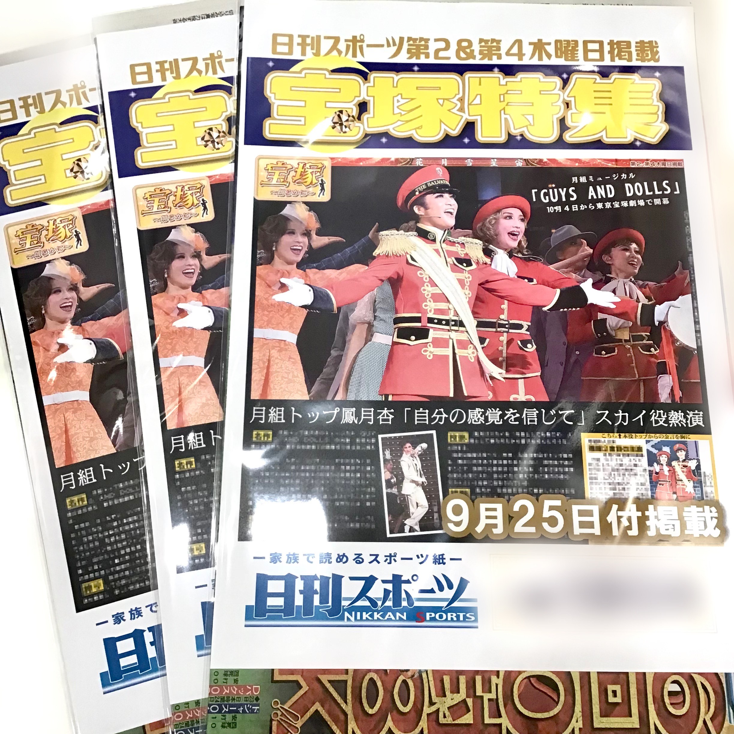 花のみち店にも月組公演『GUYS AND DOLLS』の記事が掲載された日刊スポーツ新聞が入荷いたしました🌙🎶