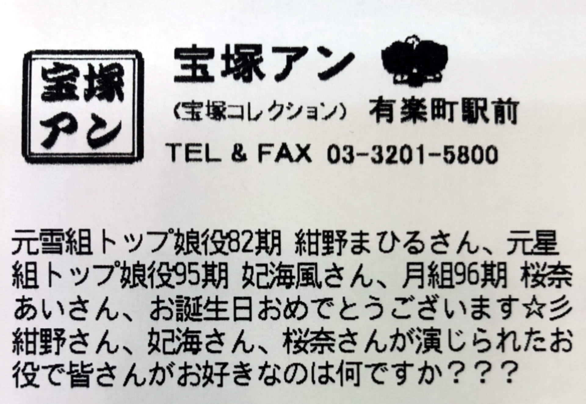 【宝塚アン】有楽町駅前店より
