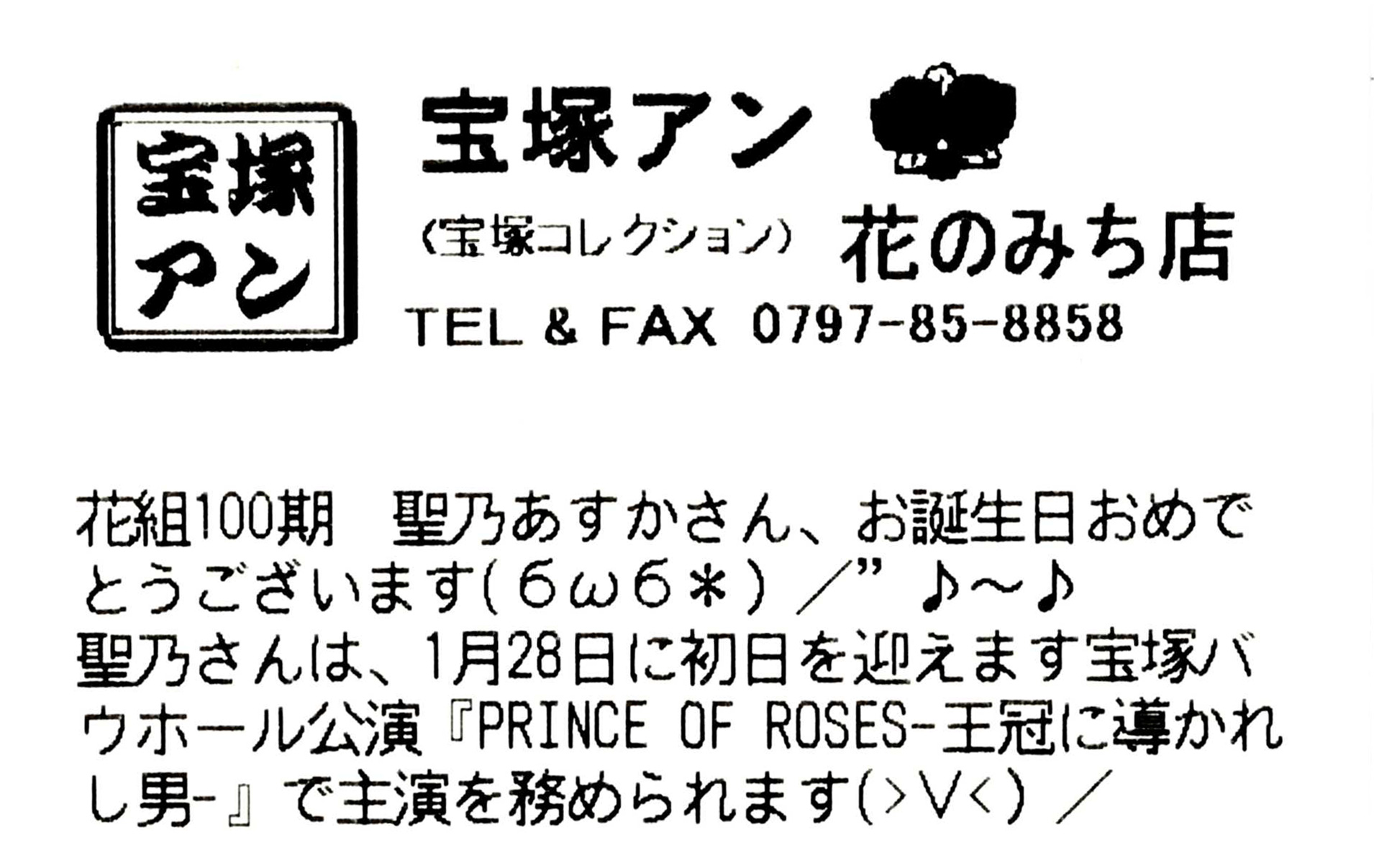 花組100期 聖乃あすかさんお誕生日おめでとうございます聖乃さんは次回バウホール初主演『PRINCE OF ROSES』にご出演