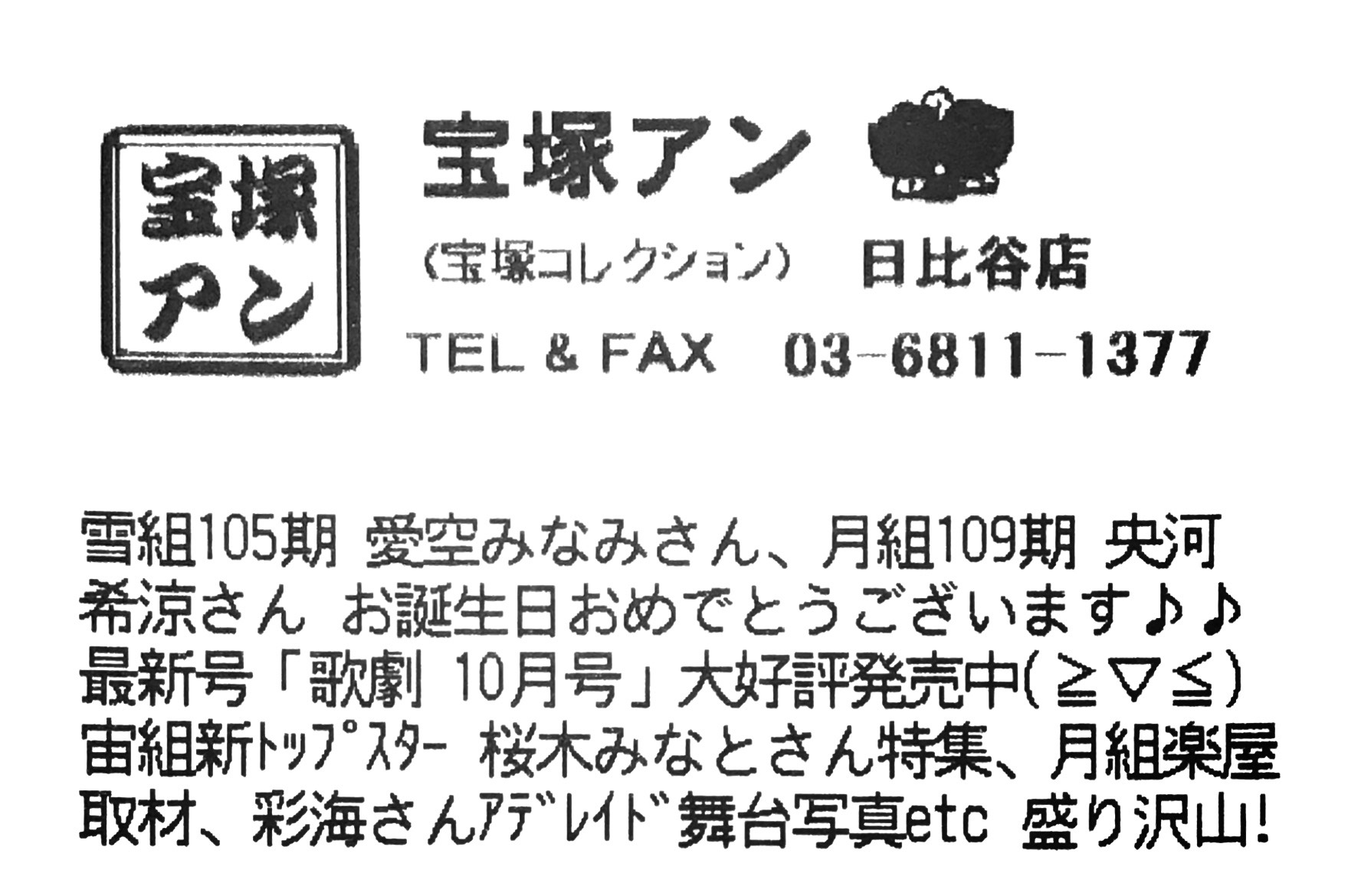 https://www.takarazuka-an.co.jp/blog/wp-trackback.php?p=45550【宝塚アン】日比谷店より