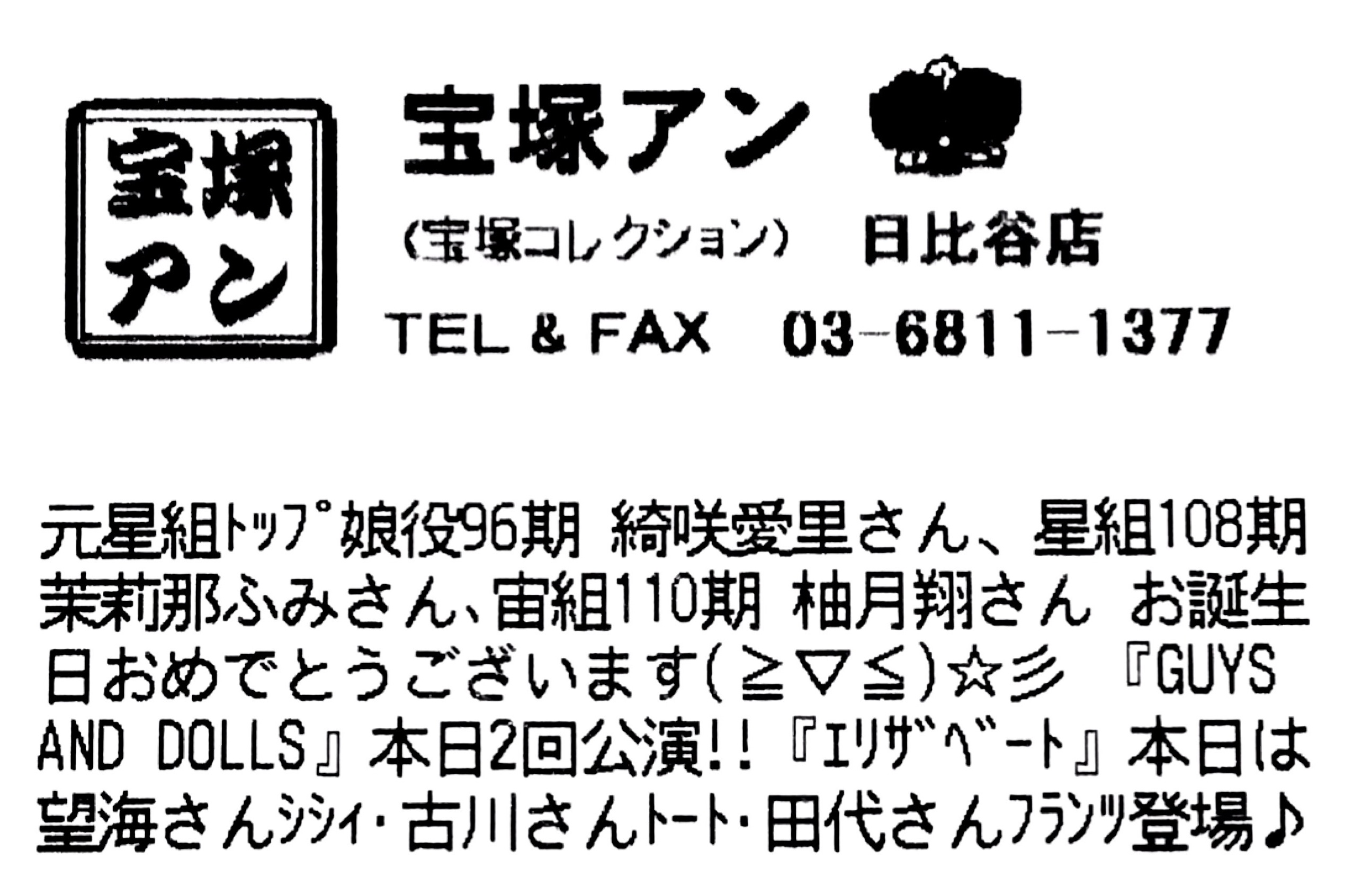 【宝塚アン】日比谷店より