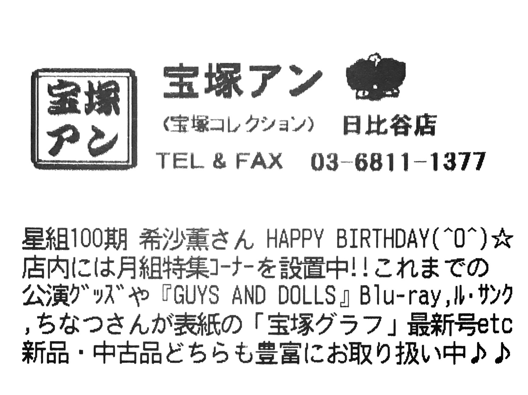 【宝塚アン】日比谷店より