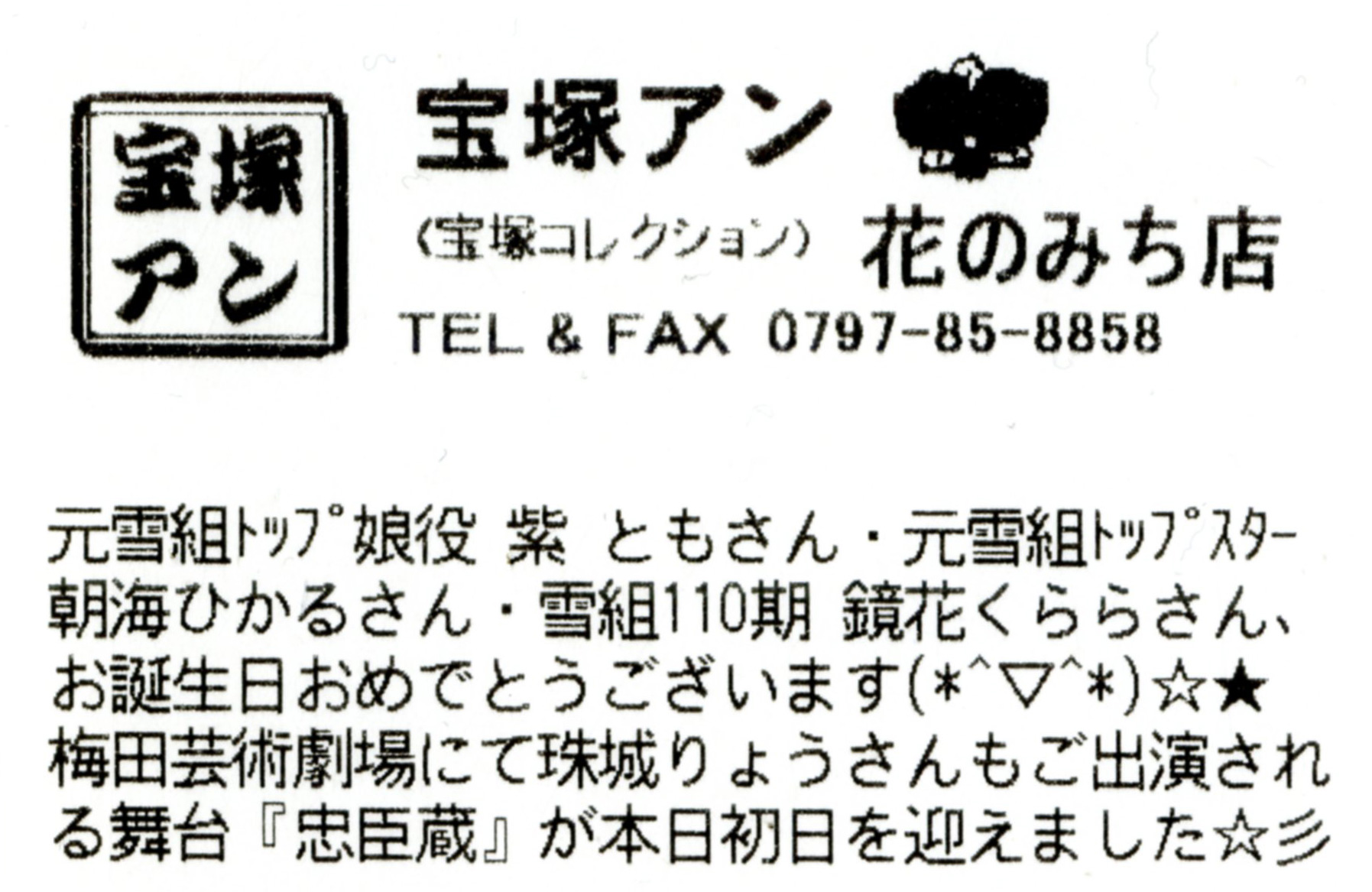 【宝塚アン】日比谷店より