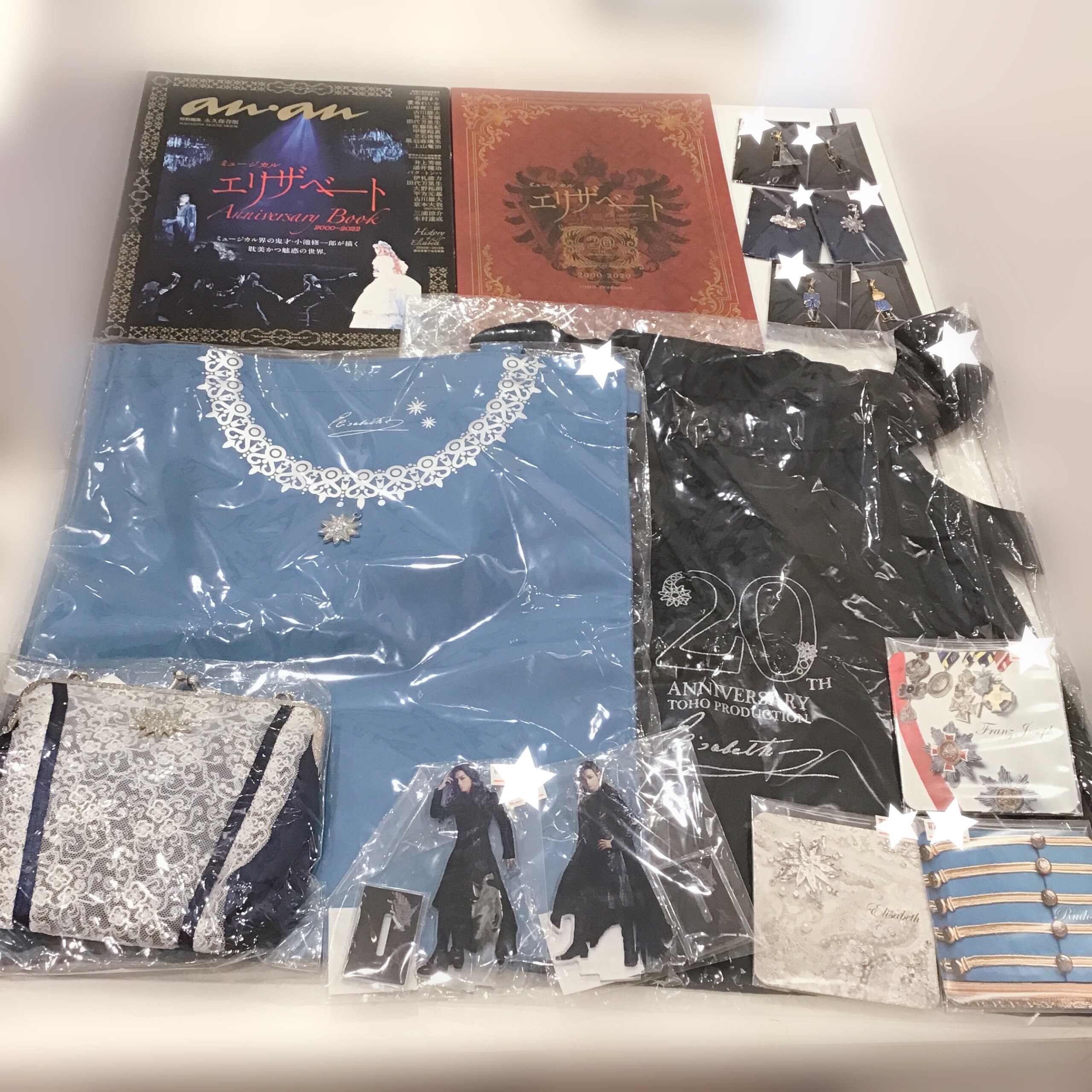 井上さんトート・山崎さんトートのアクスタ、コースター、公演バッグ🎶(ブルーは今回公演のもの☺️)