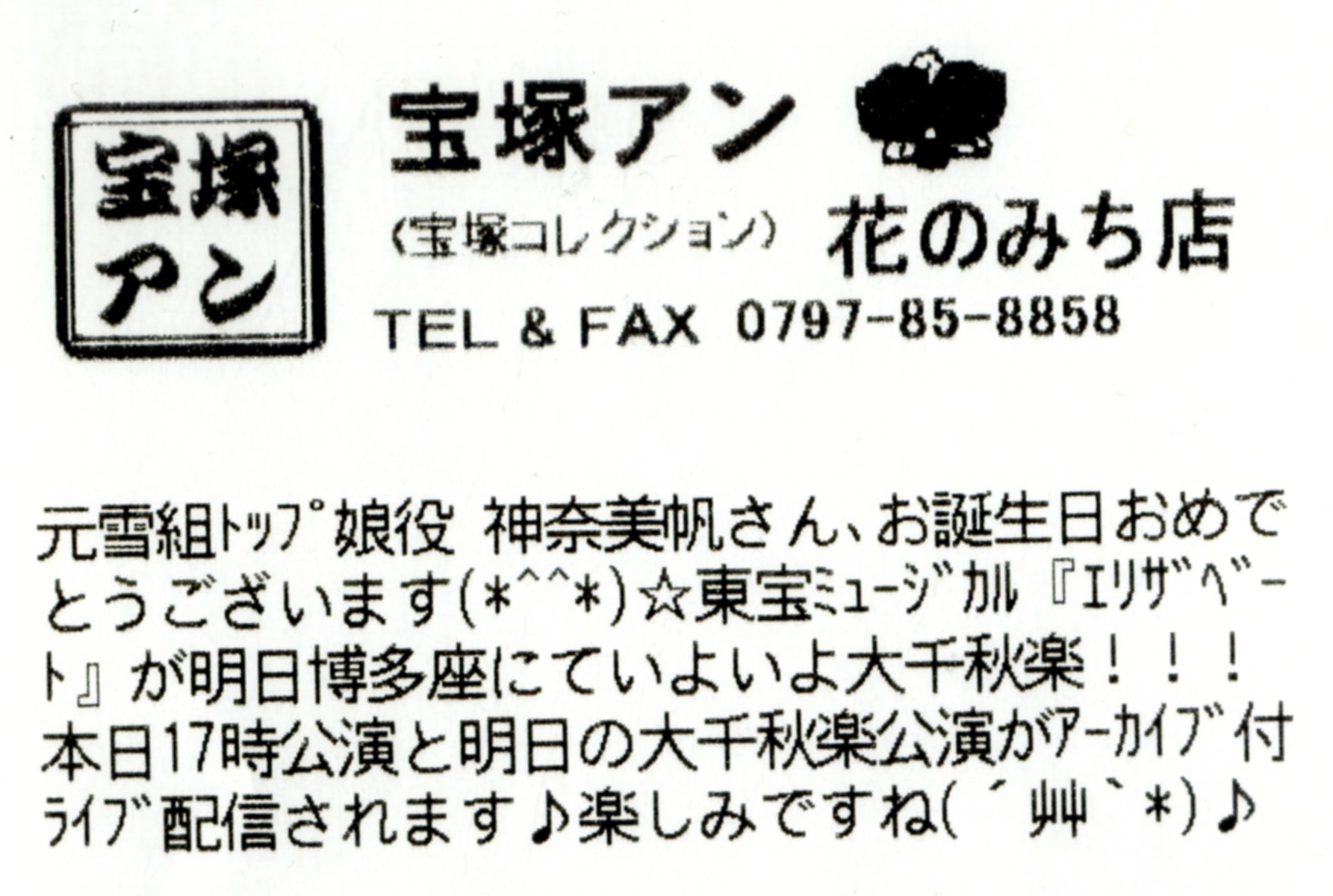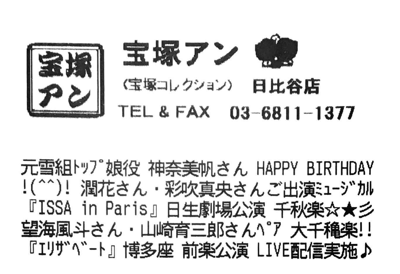 https://www.takarazuka-an.co.jp/blog/wp-trackback.php?p=47419【宝塚アン】日比谷店より