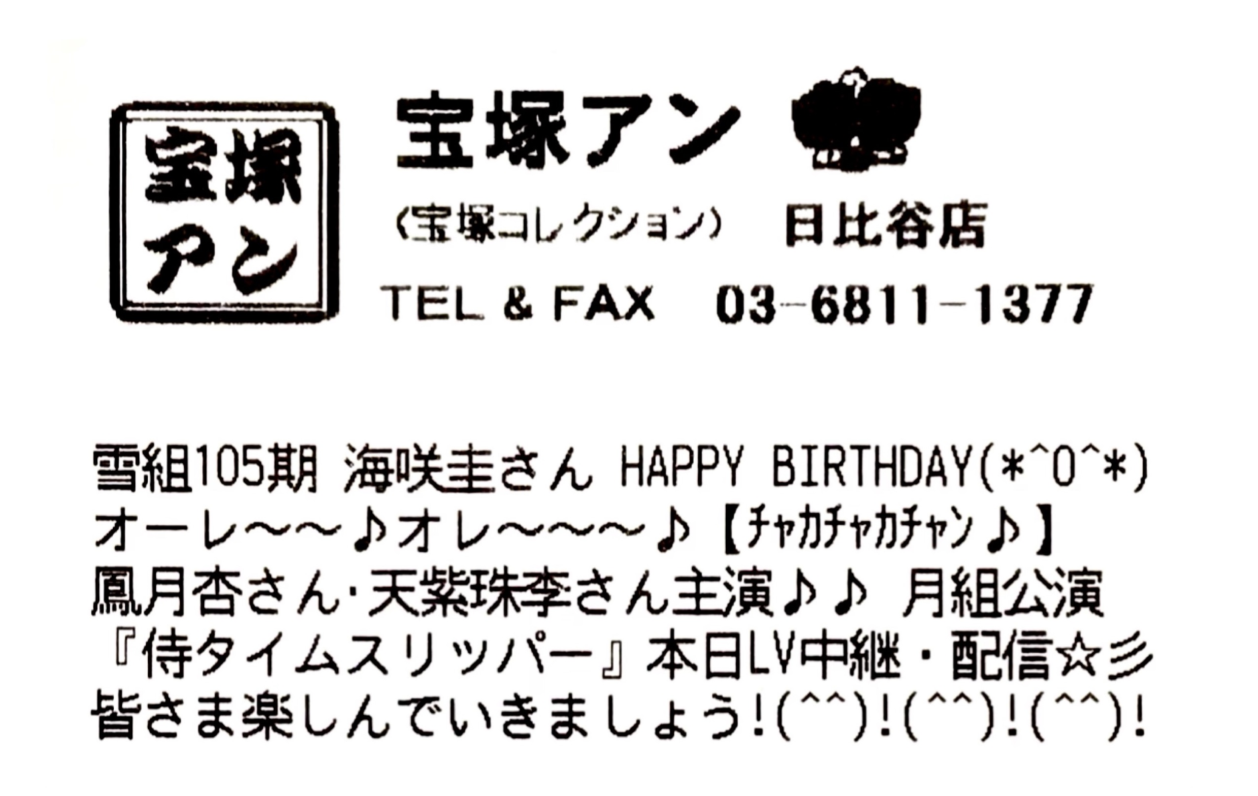 【宝塚アン】日比谷店より