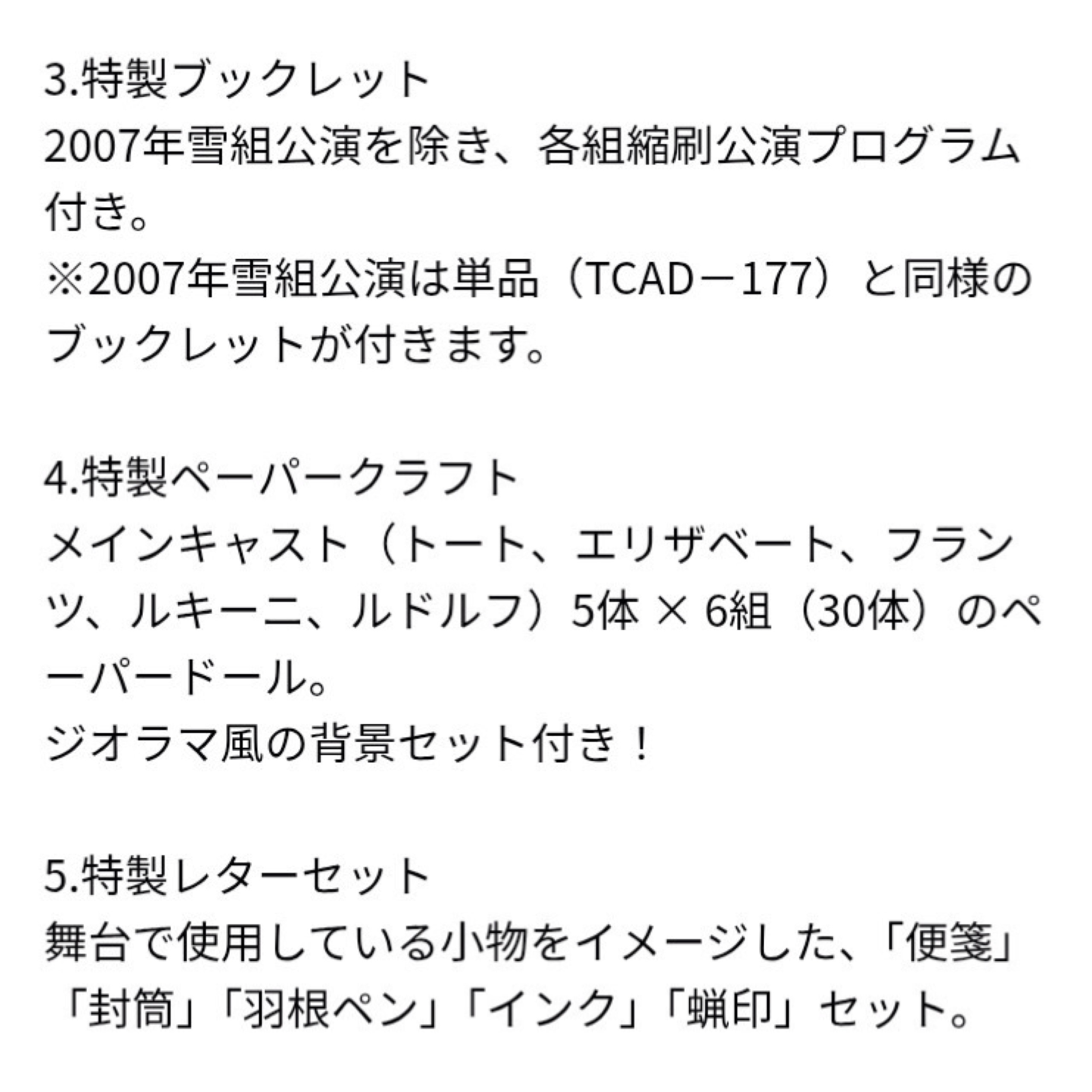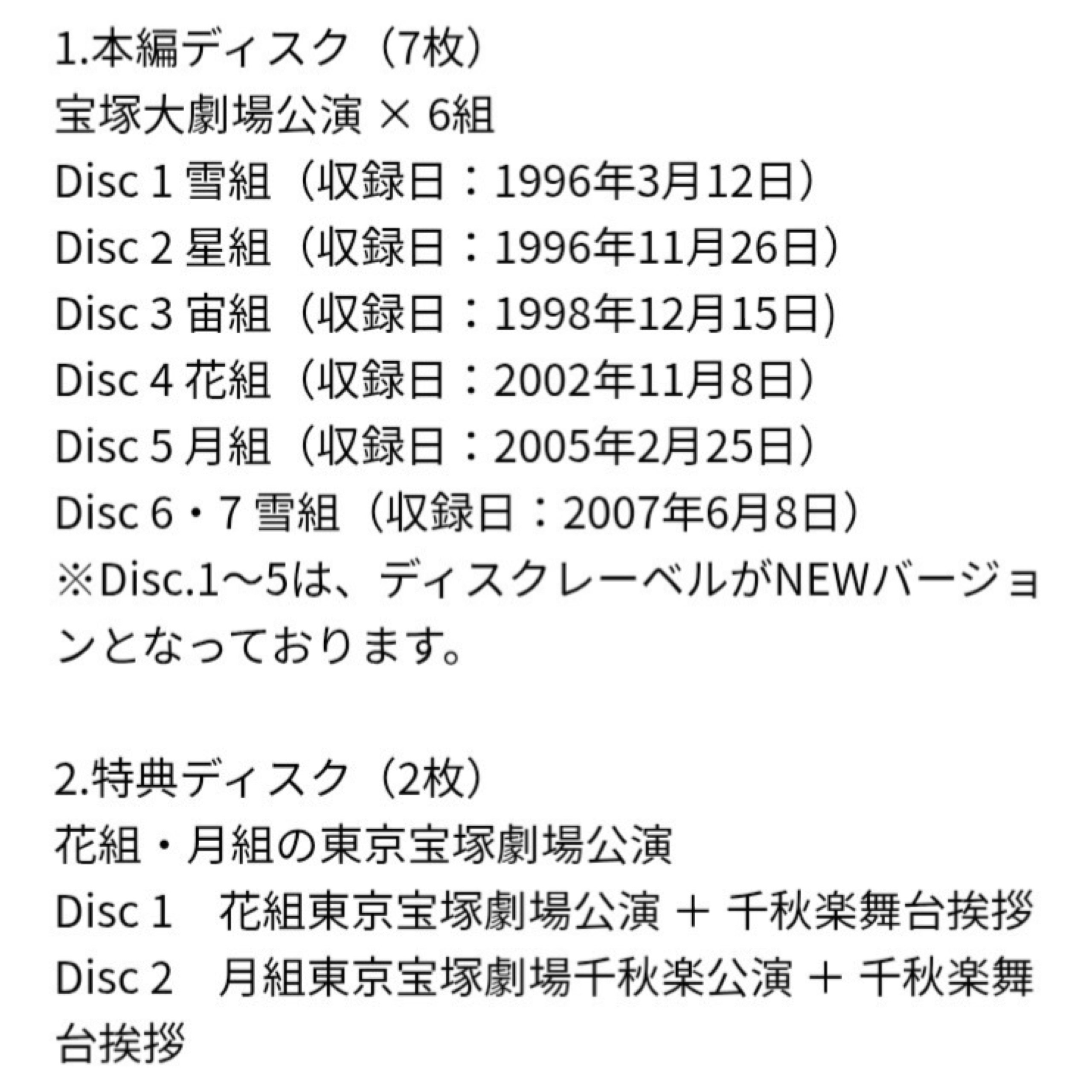 初演96年雪組公演から、96年星組・98年宙組・02年花組・05年月組・07年雪組公演のフル収録DVDがセットになった豪華版!