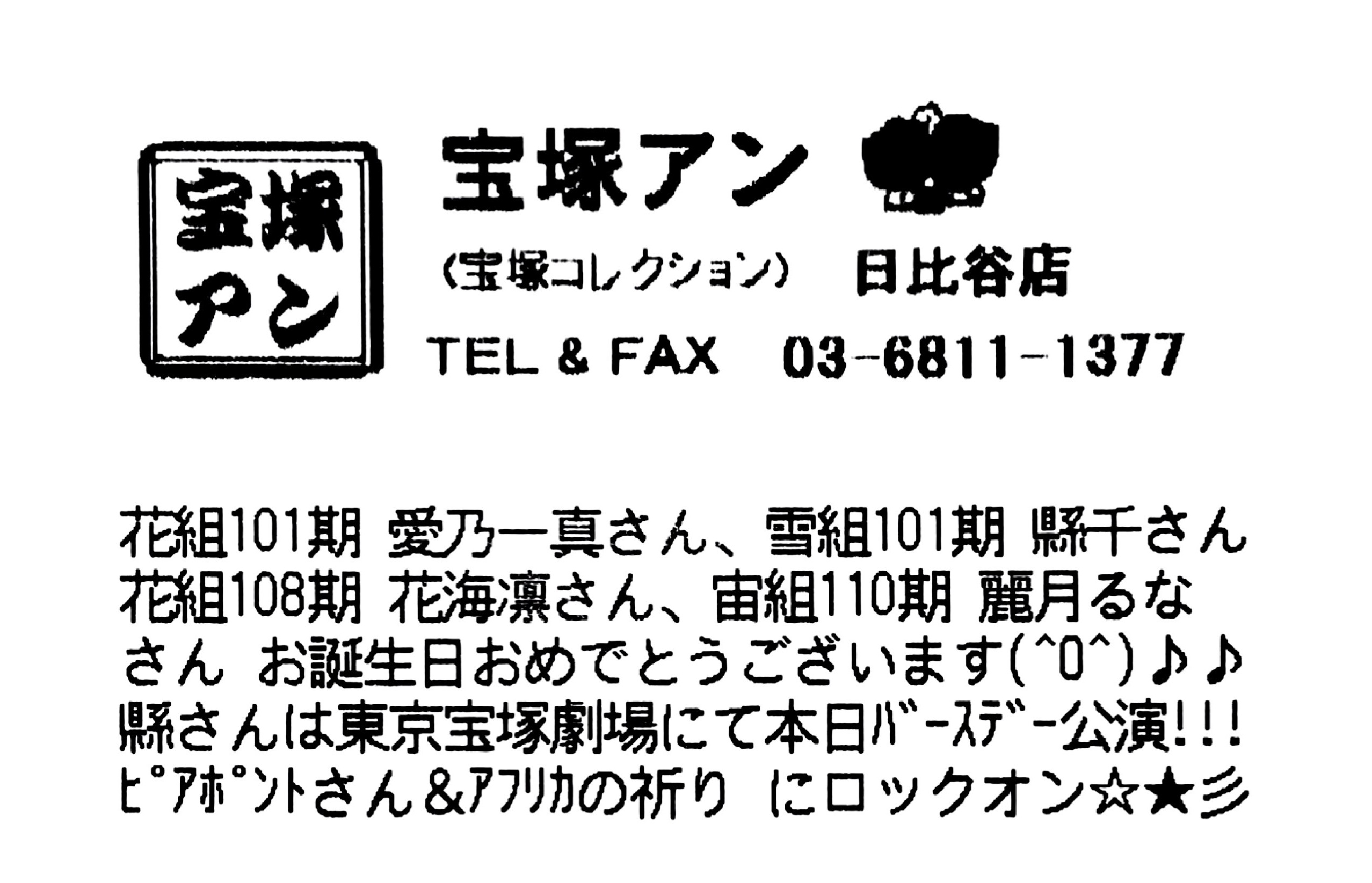 【宝塚アン】日比谷店より