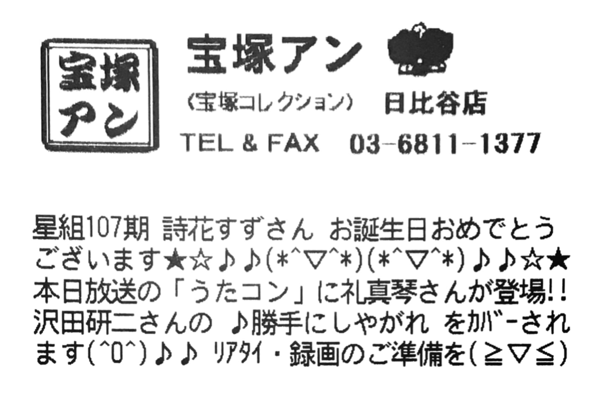 https://www.takarazuka-an.co.jp/blog/wp-trackback.php?p=47861【宝塚アン】日比谷店より