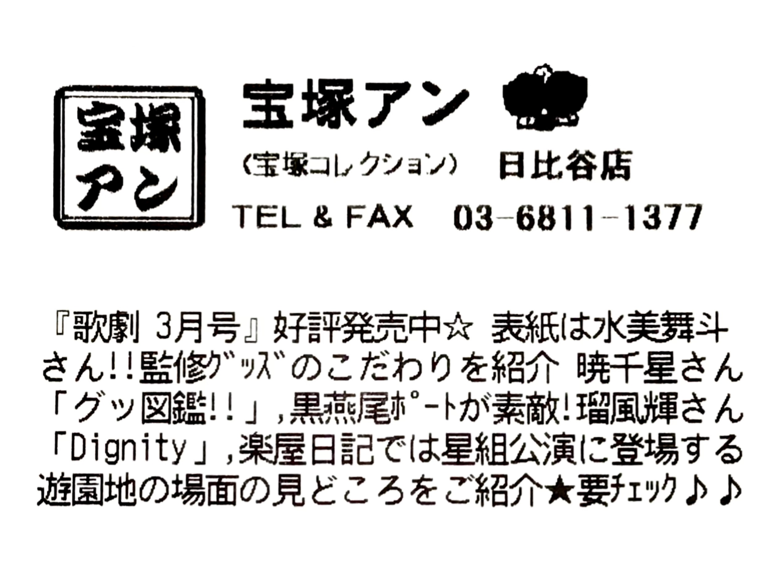 https://www.takarazuka-an.co.jp/blog/wp-trackback.php?p=48140【宝塚アン】日比谷店より