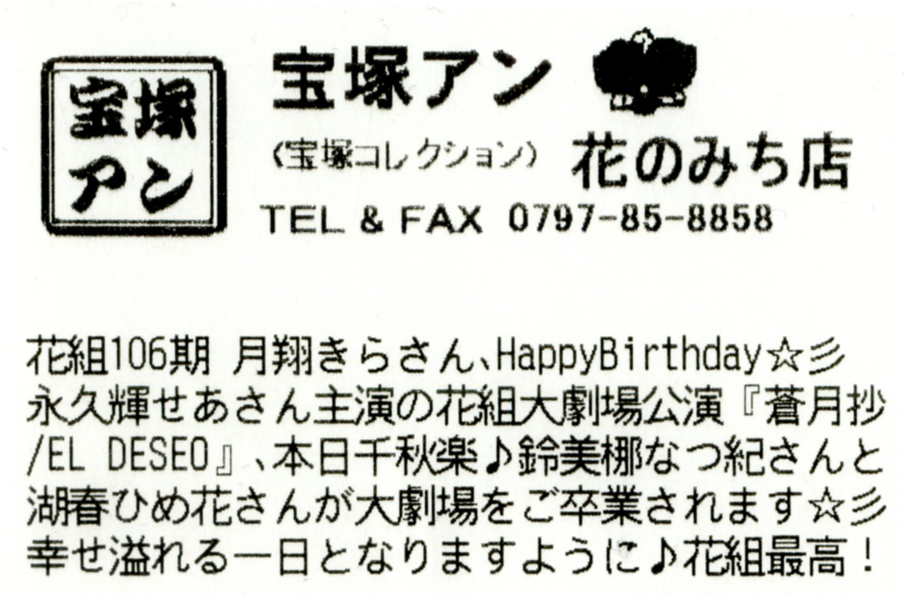 花組106期 月翔きらさん、Happy Birthday☆彡