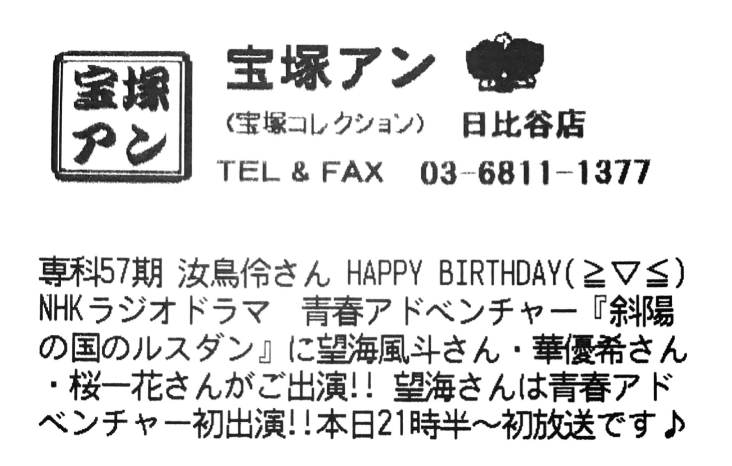 【宝塚アン】日比谷店より