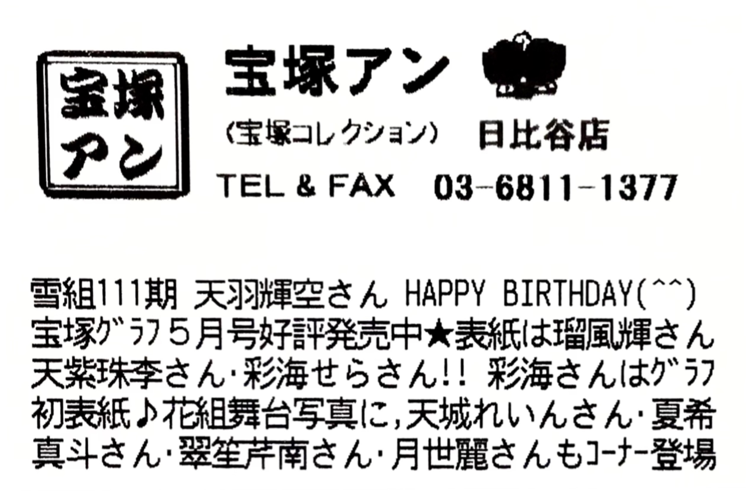 https://www.takarazuka-an.co.jp/blog/wp-trackback.php?p=48840【宝塚アン】日比谷店より
