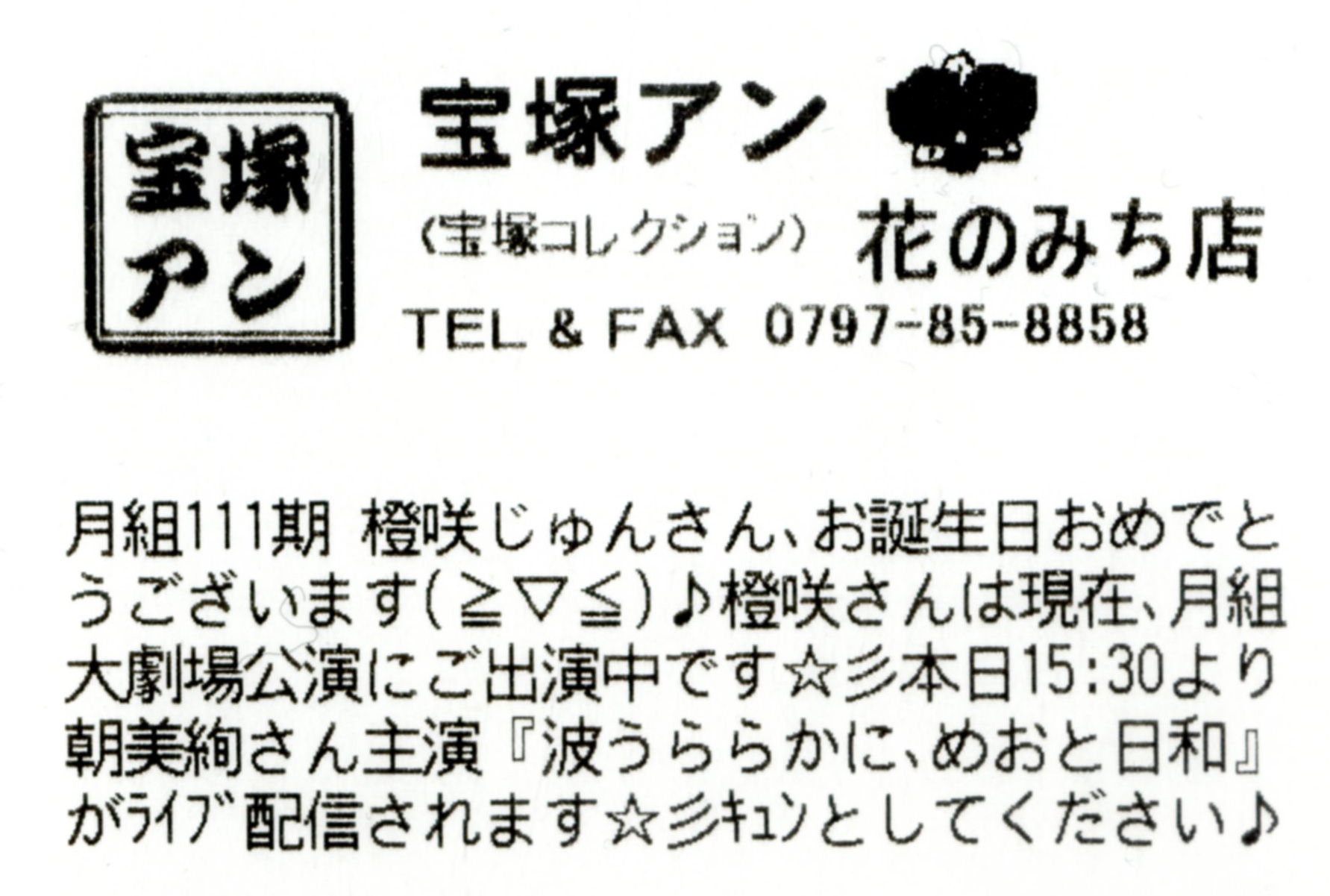 月組111期 橙咲じゅんさん、お誕生日おめでとうございます(≧▽≦)♪