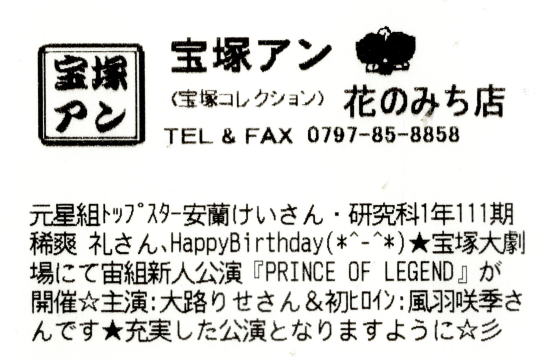 元星組トップスター安蘭けいさん、研究科1年111期 稀爽礼さん、Happy Birthday(*^-^*)★