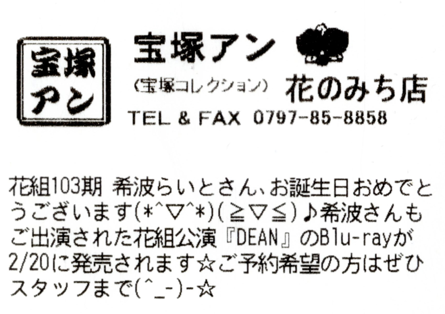 花組103期 希波らいとさん、お誕生日おめでとうございます(*^▽^*)(≧▽≦)♪