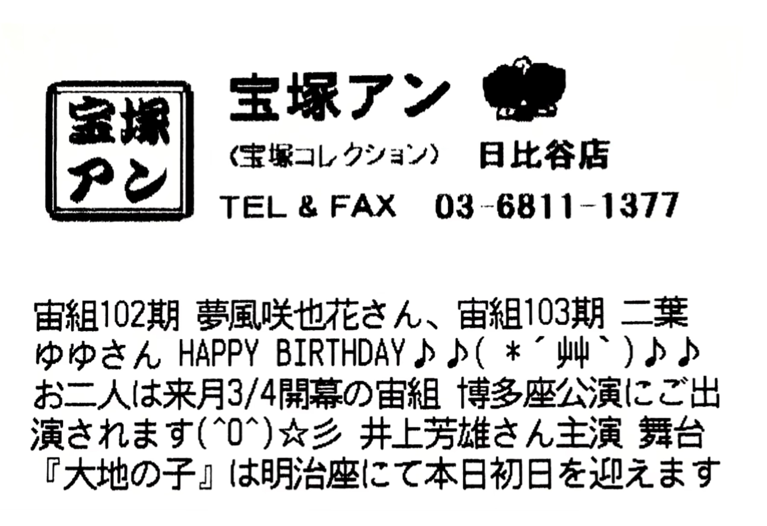 宙組102期 夢風咲也花さん、宙組103期 二葉ゆゆさん HAPPY BIRTHDAY🎂✨💐🎶💕