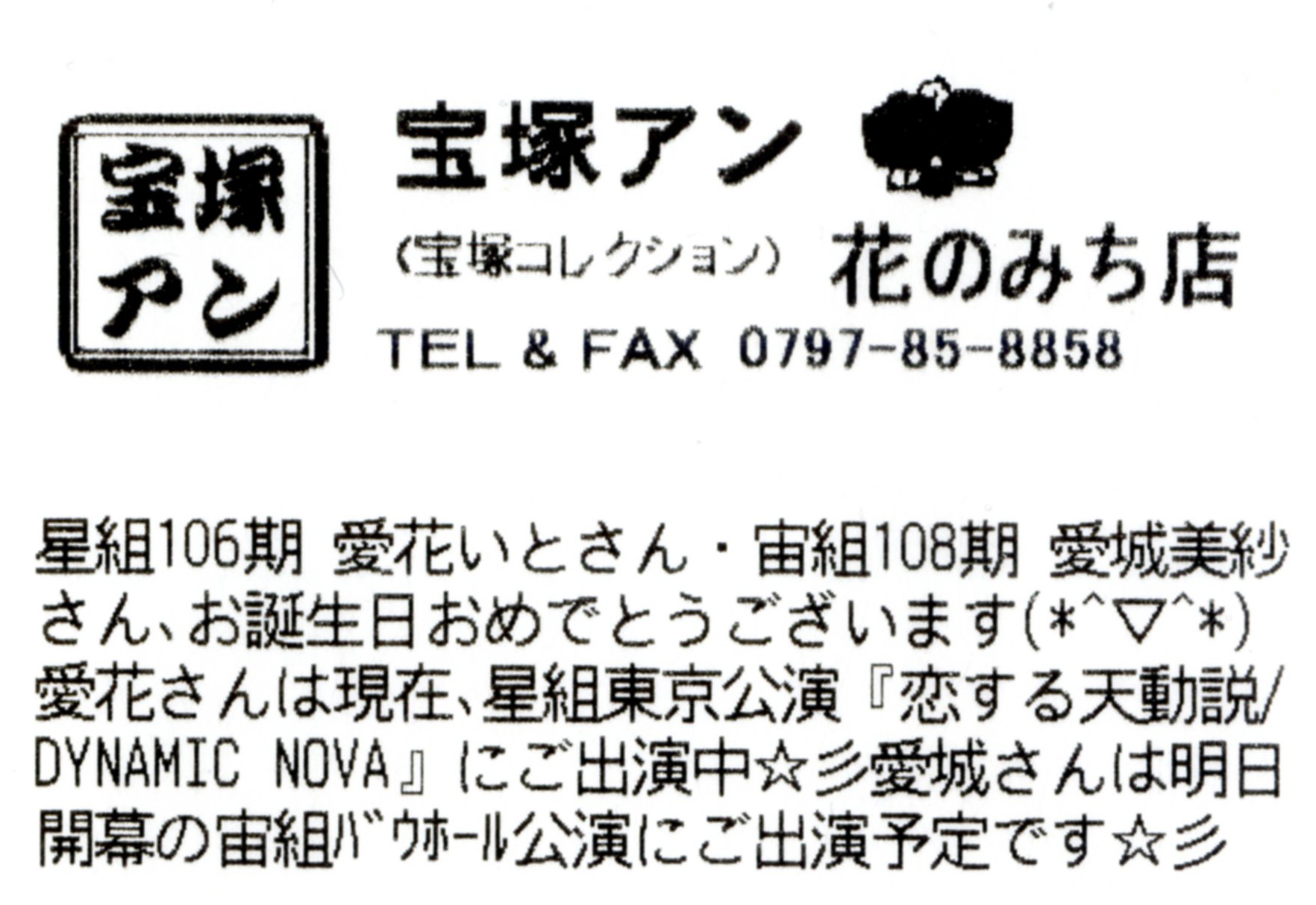愛花さんは現在、星組東京公演『恋する天動説/DYNAMIC NOVA』にご出演中☆彡