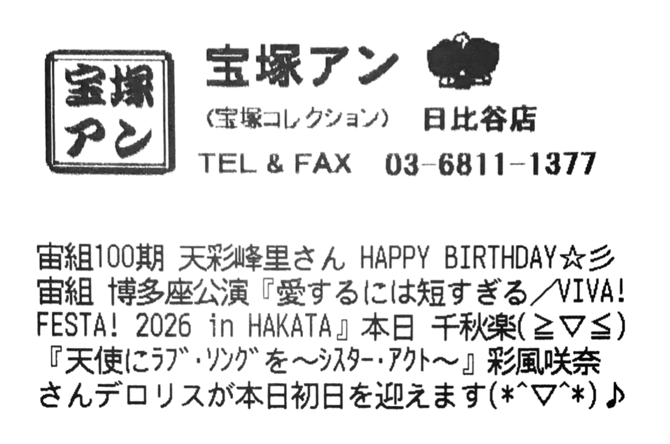 宙組博多座公演『愛するには短すぎる/VIVA! FESTA! 2026 in HAKATA』本日千秋楽(≧∀≦)㊗️‼️