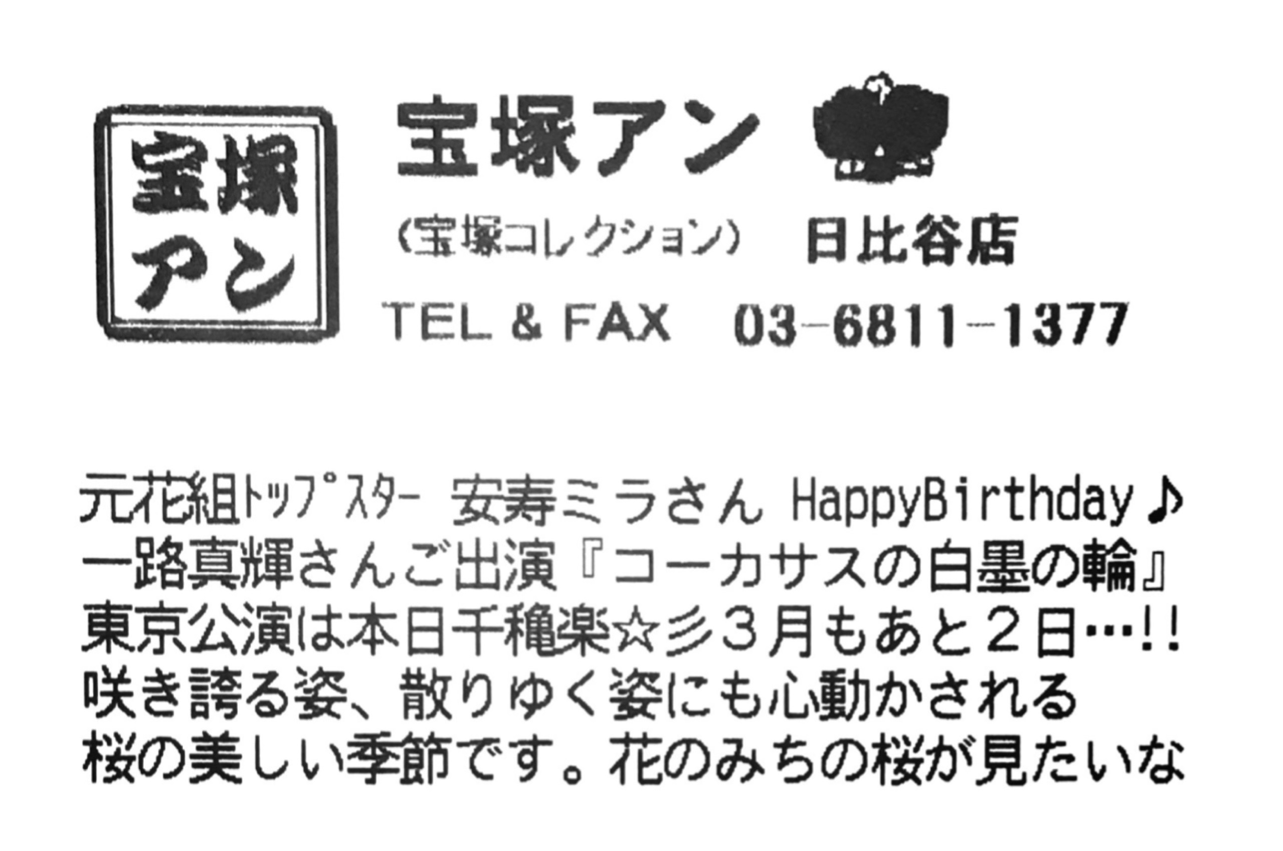 元花組トップスター 安寿ミラさん Happy Birthday💐🎶🎂