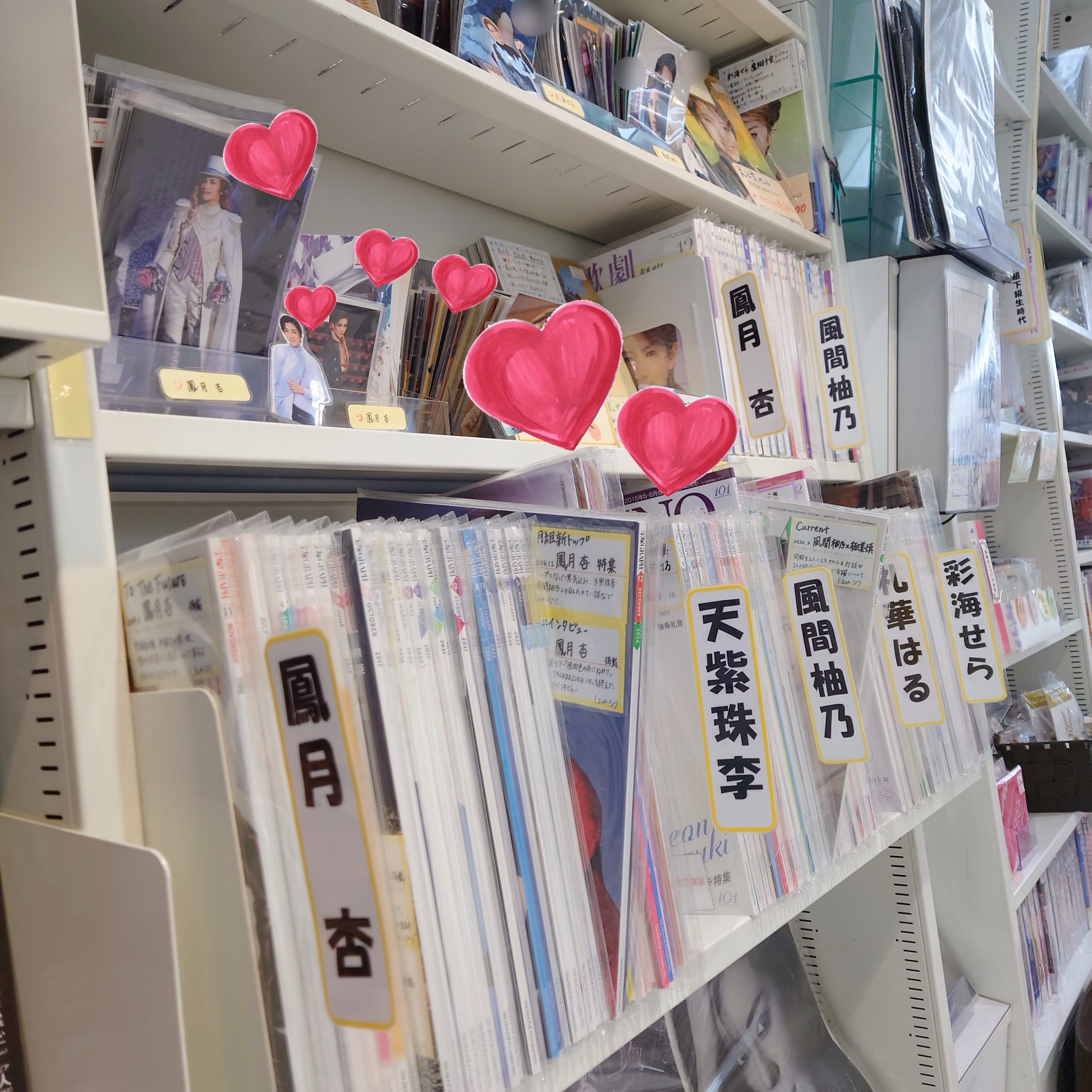 店内奥の月組特集コーナーでは鳳月杏さん、天紫珠李さん、風間柚乃さん、礼華はるさん、彩海せらさん掲載の歌劇や宝塚グラフをご用意しております📚🎶