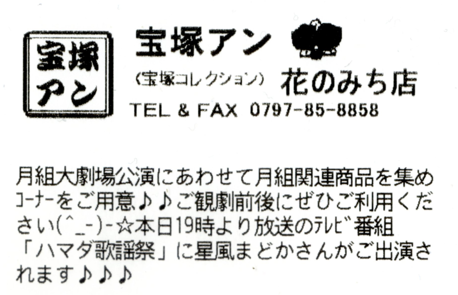 本日19時より放送のテレビ番組「ハマダ歌謡祭」に星風まどかさんがご出演されます♪♪♪