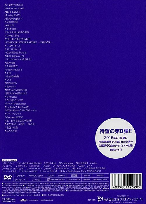 宝塚大劇場公演と、宝塚バウホール、シアター・ドラマシティ、全国ツアー等のテーマソングを、 映像と共にお楽しみいただける人気シリーズ!